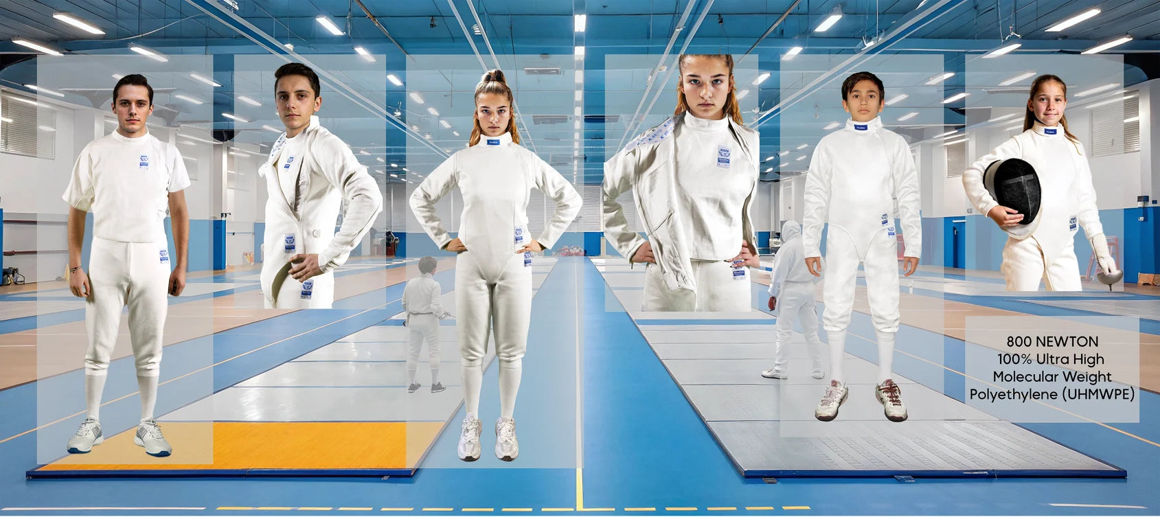 Uluslararası müsabakalarda zorunlu olan FIE onaylı 800 Newton eskrim elbiseleri, sporcuya maksimum güvenlik ve yüksek dayanıklılık sağlar.
