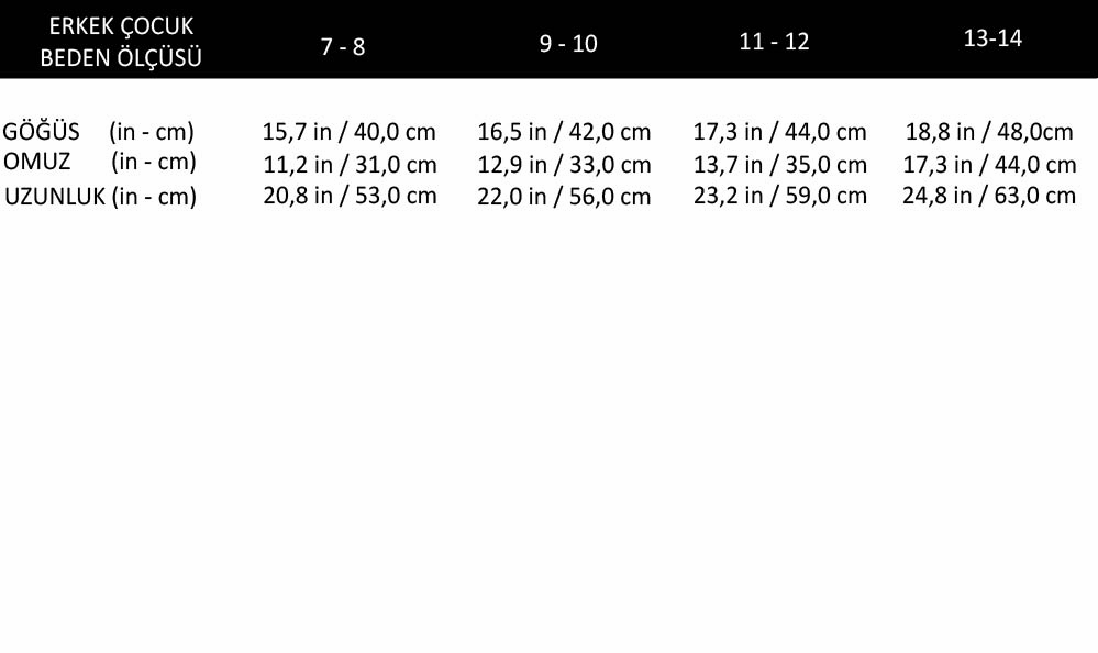 • There may be +/- deviations between sizes.