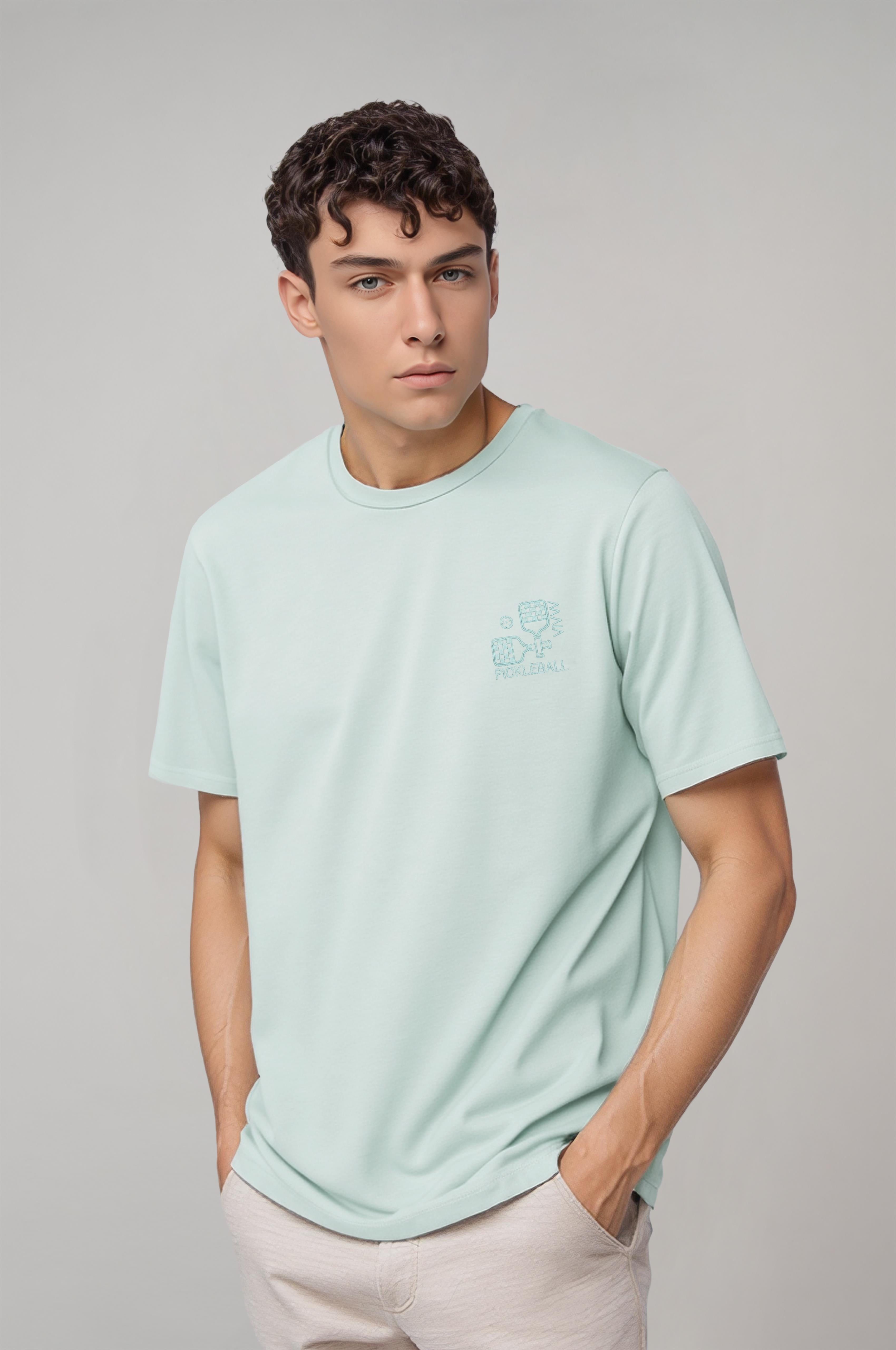 Erkek Su Yeşili Renkli Pickleball Nakış Detaylı T-shirt