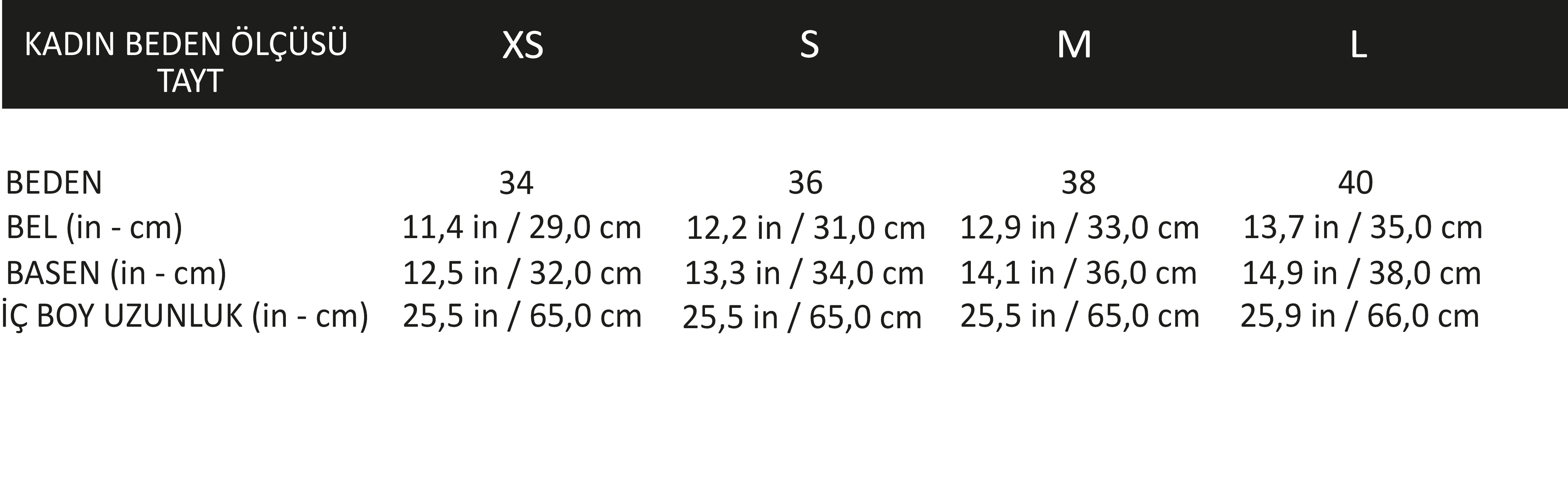• Dikiş detayları ise taytın estetik görünümünü tamamlar.